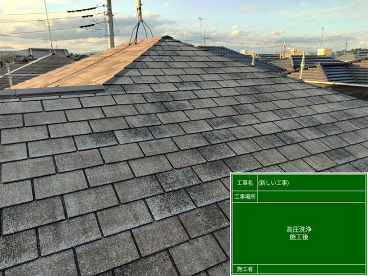 長年に渡りついてしまった汚れやコケも、高い水圧により剥がれ落ちているのがお分かりいただけるかと思います。