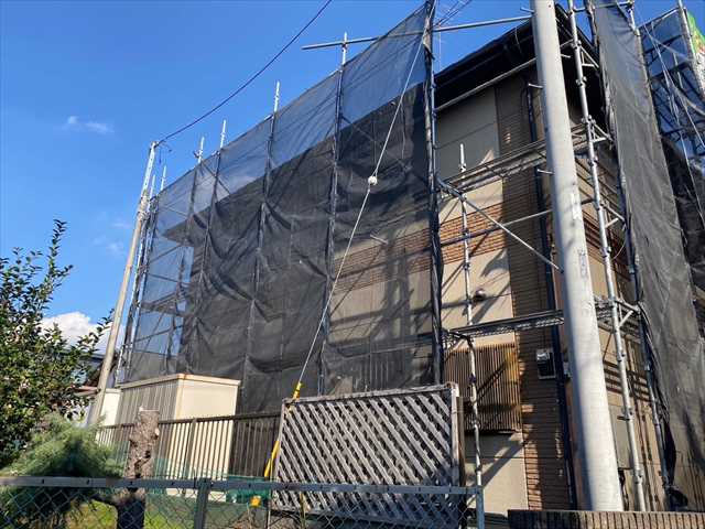 かすみがうら市で外壁塗装。足場を設置して高圧洗浄で塗装の準備です!