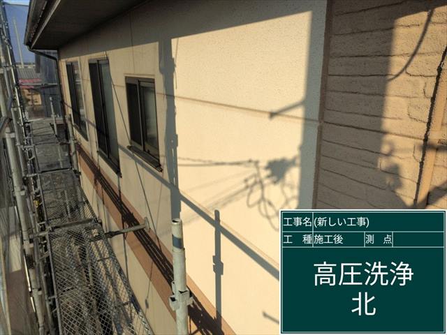 かすみがうら市の屋根外壁塗装現場、外壁の高圧洗浄完了です。
