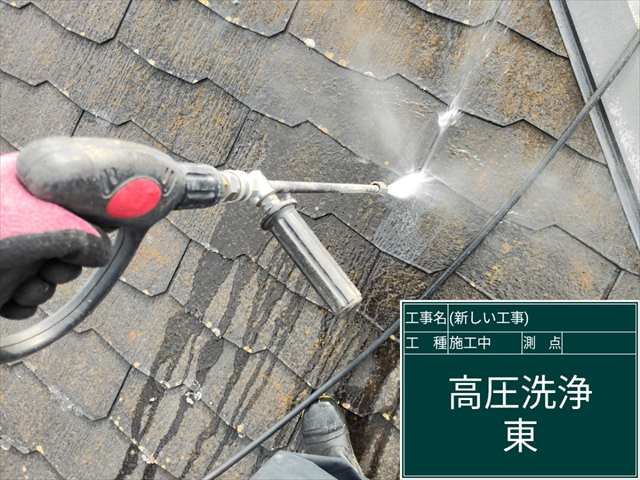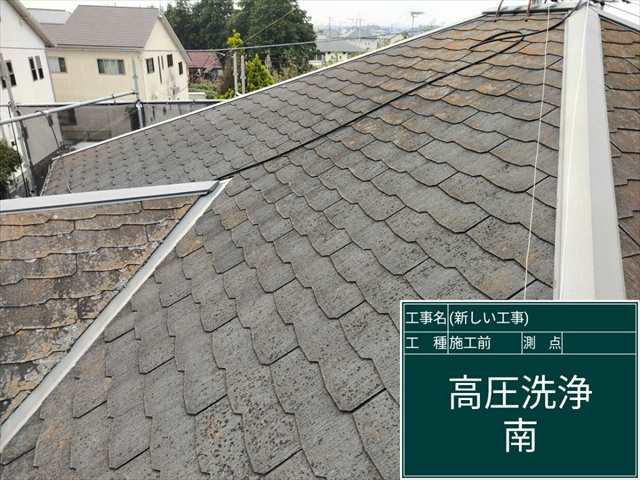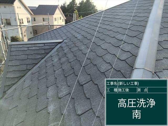スレート屋根の高圧洗浄、20年という年月で屋根にこびりついていた苔が綺麗に落ちました!