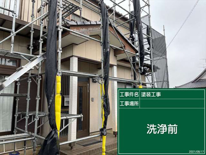 かすみがうら市で塗装工事をおこなうための足場設置・高圧洗浄をおこないました!