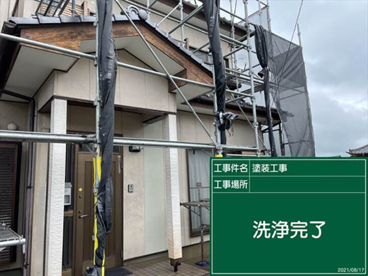 洗浄前と比べると、古い塗膜が剥がれていますね。