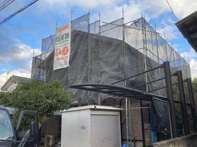 外壁塗装をおこなわないので、足場も施工に適した足場を建ててもらっています。