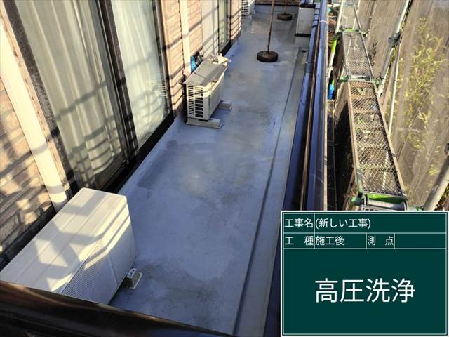 今回ベランダの塗装はおこないませんが、高圧洗浄ついでに綺麗にしていきました。