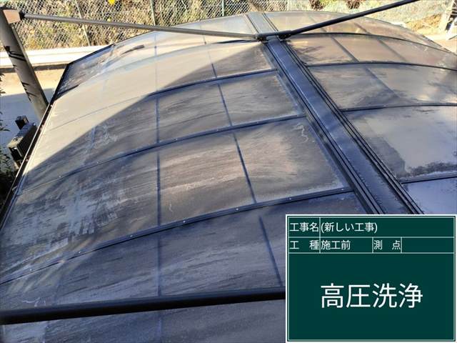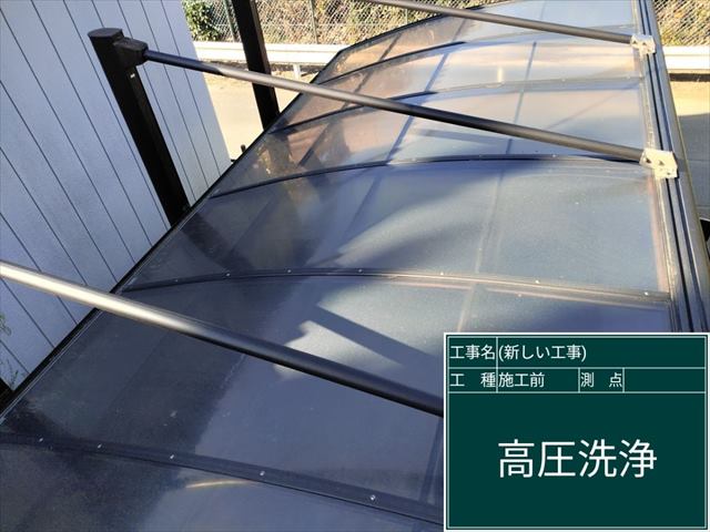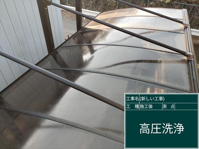 小美玉市、カーポートの汚れも高圧洗浄で落としていきました。