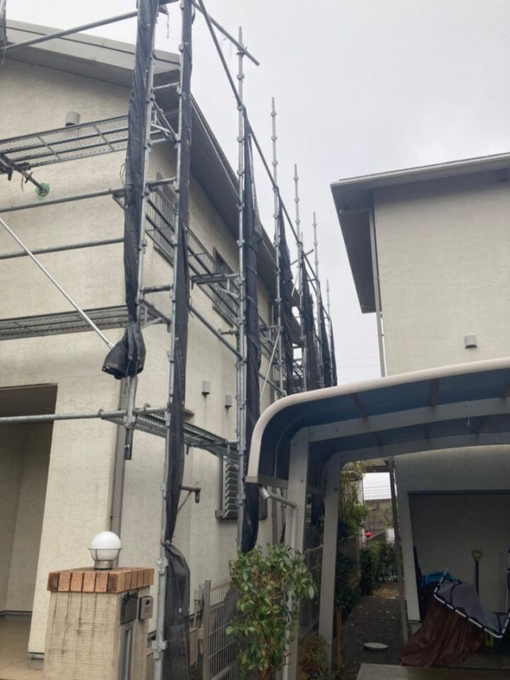 つくば市で工事前の下準備。足場設置・高圧洗浄・養生を行いました。