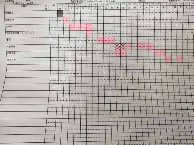 日程表の他、お客様との交換ノートをつくっており、日々の終わりにどのような施工をしたのか、次に何をするのか、を職人が記載して、お客様にご確認をいただいています。