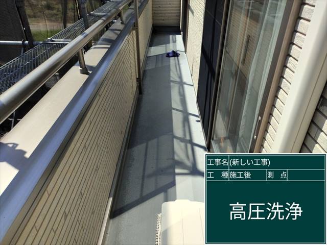 土浦市外壁塗装現場のベランダ。