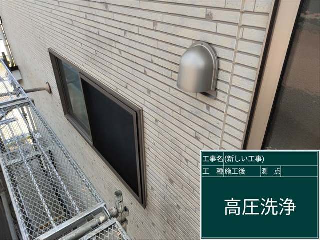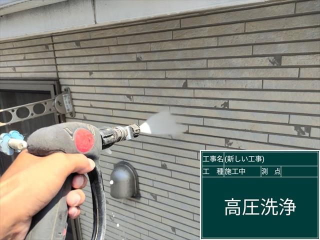 汚れが全体的にうっすらついていた外壁も高圧洗浄で綺麗にします。