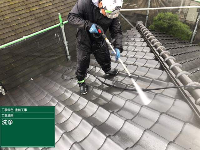 屋根は、瓦に苔が発生して緑色になっていましたが、高圧洗浄で瓦本来の色に戻りました。