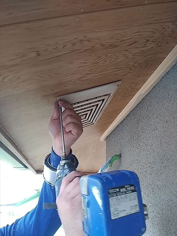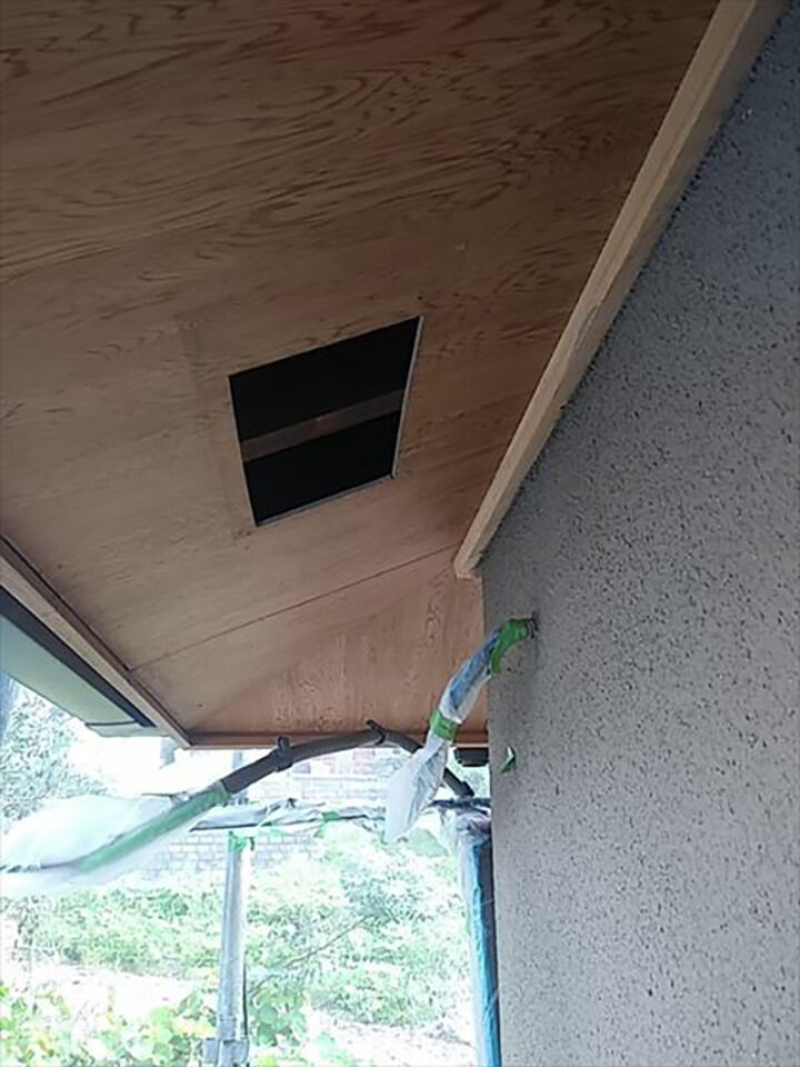 はずすと軒天には換気口カバーの跡がくっきりと残っていますね。汚れが溜まっている証拠です。