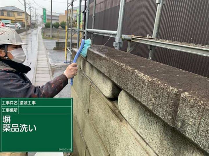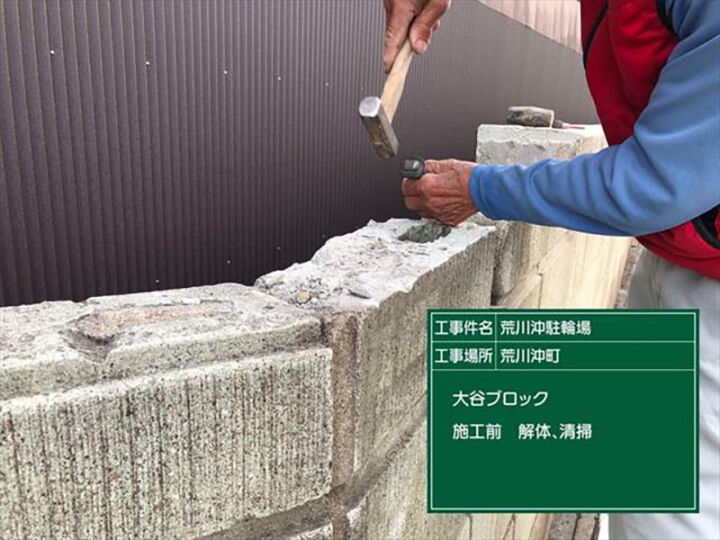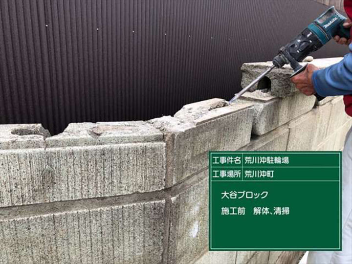 ブロック塀の補修!汚れた塀の汚れを落として切断加工