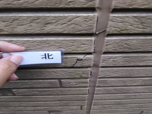 横のひび割れは外壁材の繋ぎ目の隙間が広がったものです。