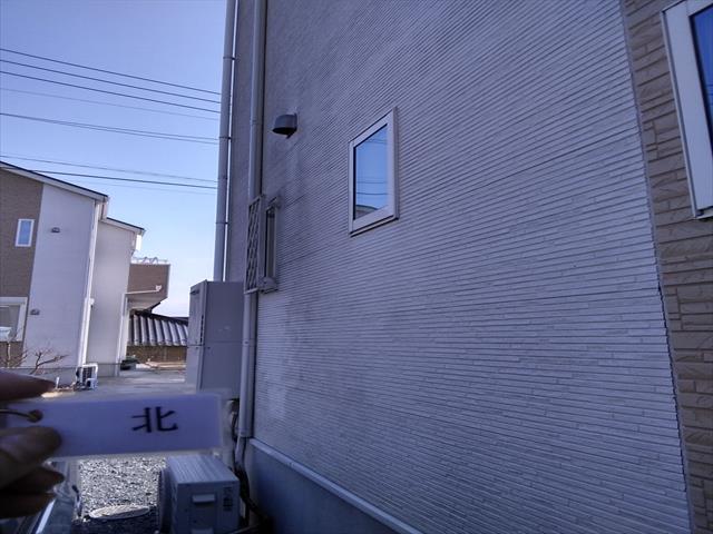 石岡市で現地調査。欠けた窯業系サイディング外壁と薄汚れた北側外壁