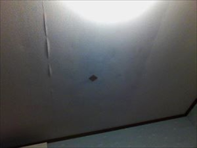 「雨漏りをしている、天井に穴が開いている、二階に染みている」との内容でした。