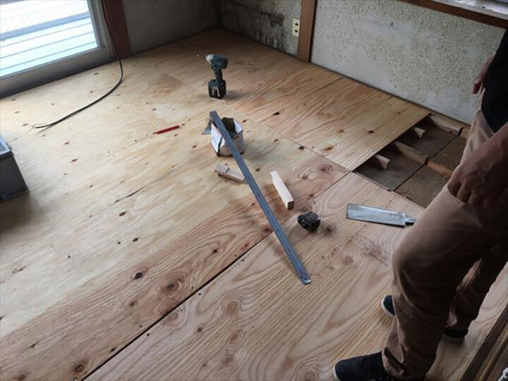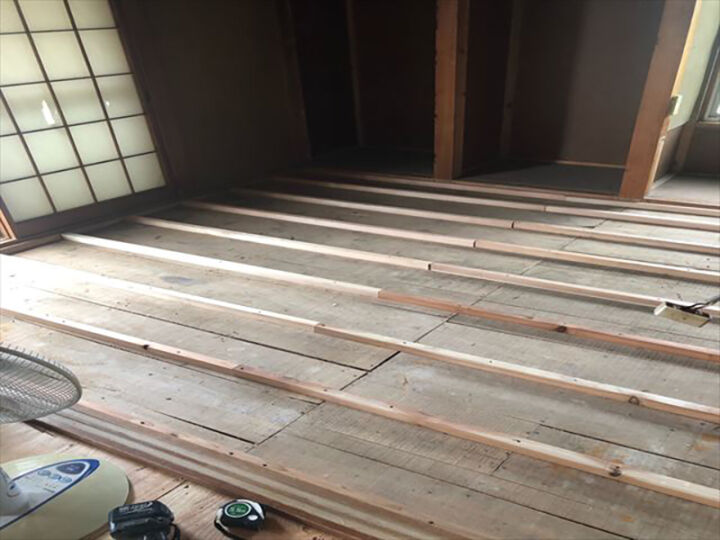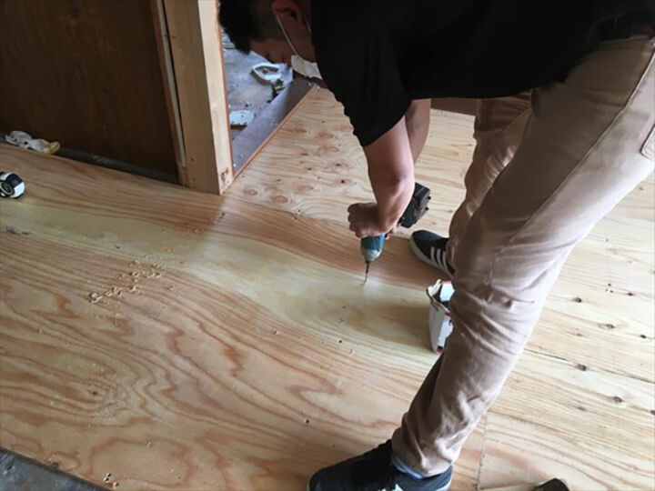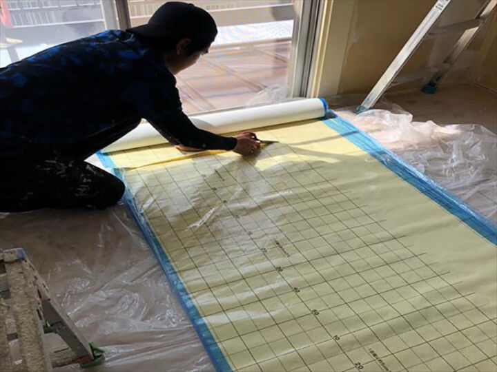 床の上に直接貼る部分も同じように一枚ずつ調整し貼り進めます。