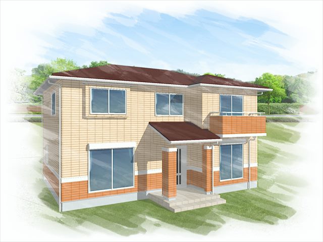 かすみがうら市の現場でおこなったカラーシミュレーション、こちらはお客様がお持ちだった「新築時」のパースです。