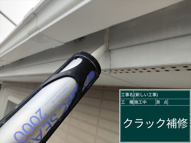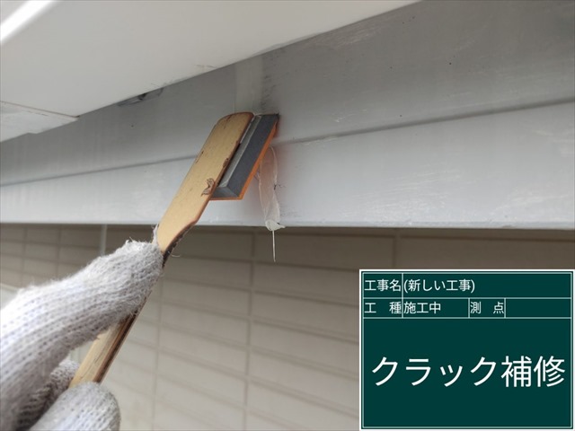 かすみがうら市で塗装前のクラック補修。破風板のヒビ割れを補修します