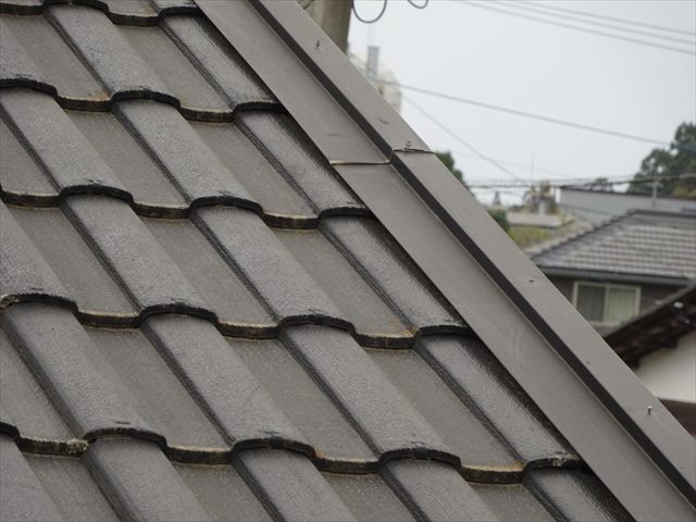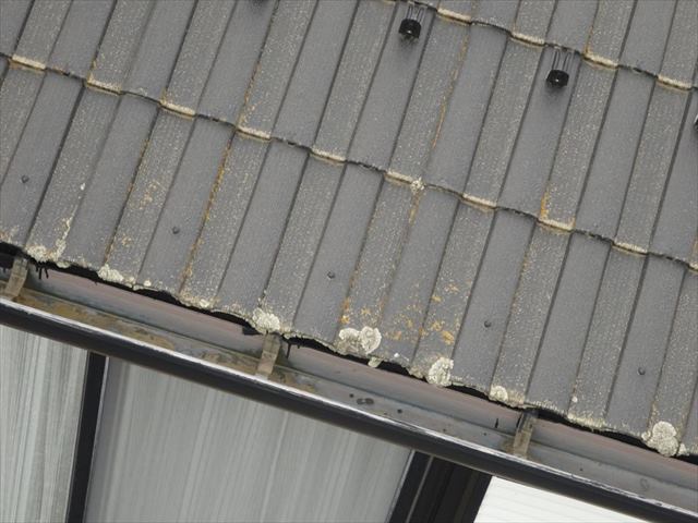 屋根瓦の端部が白っぽくなり、劣化しているのがわかりますね。