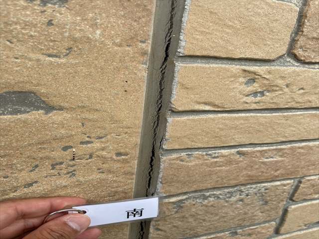 かすみがうら市、南側外壁のシーリングに肌分かれしたものがありました。
