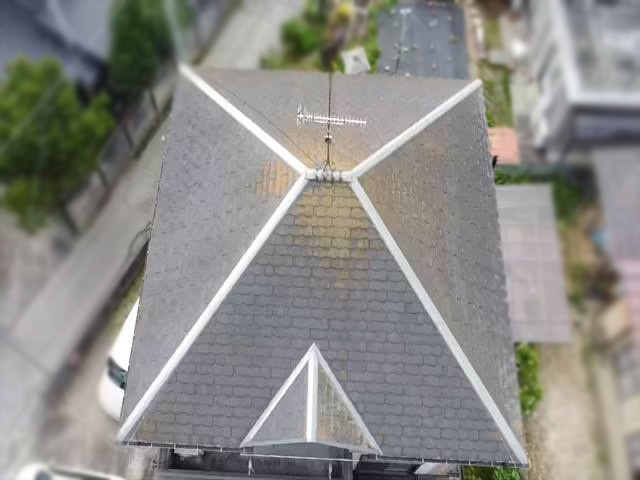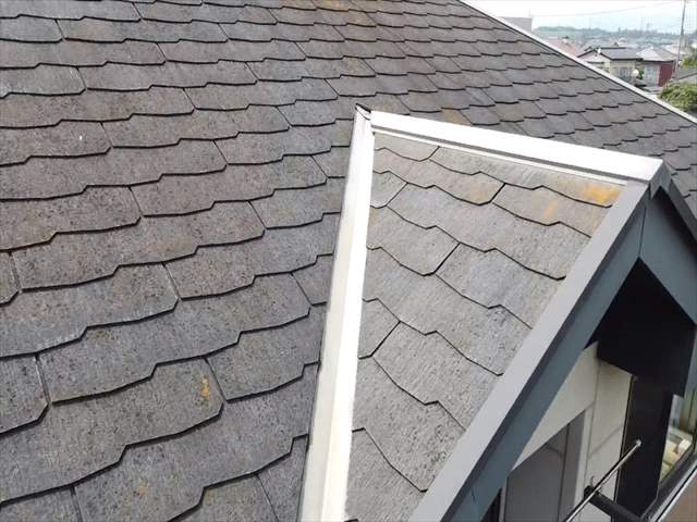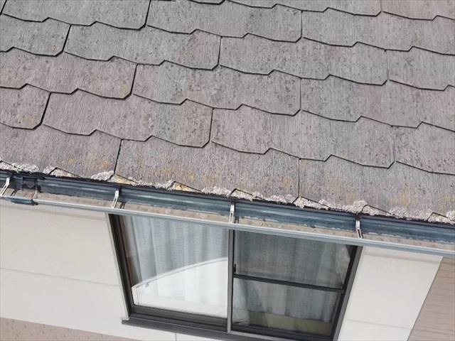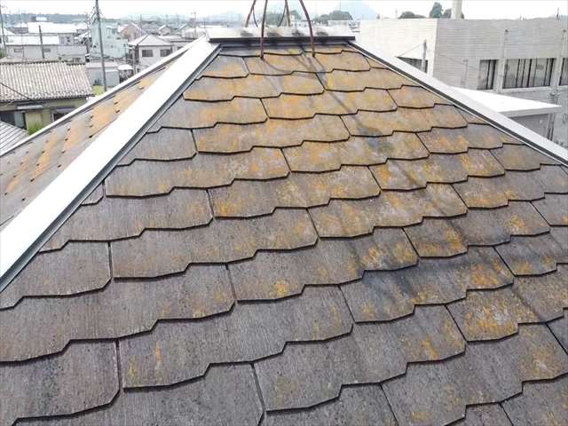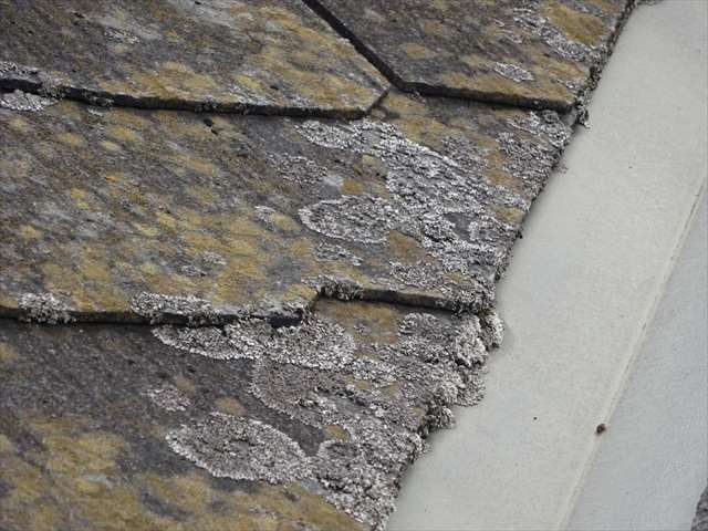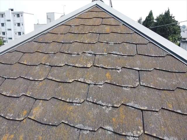 20年経ったスレート屋根は色褪せて苔が生えていました