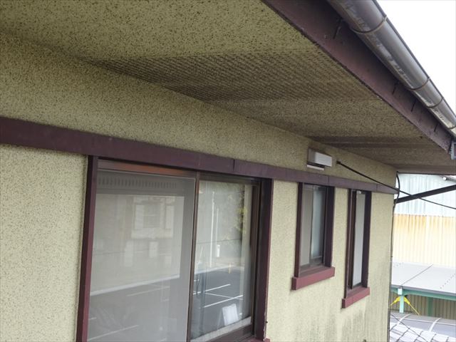 モルタル軒天も塗膜の劣化はみられますが、真っ黒になるほどの被害はありませんでした。