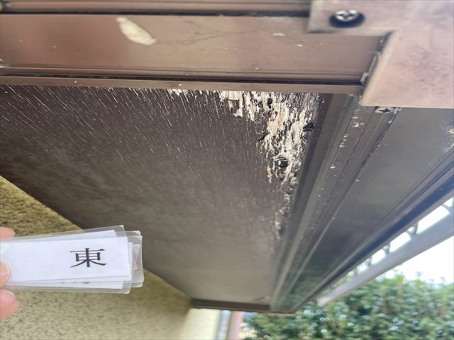 よっぽどの横殴りの雨でないかぎり直接雨が当たることはありませんが、塗膜がボロボロになった箇所からは劣化が広がっていきます。