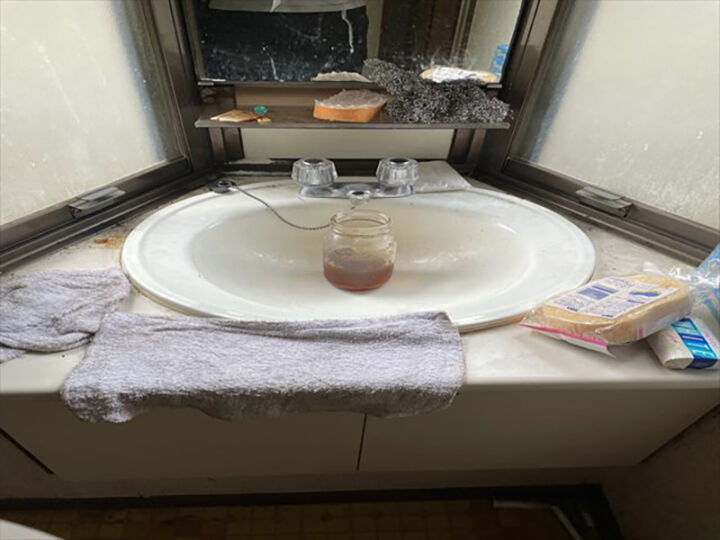 洗面台はオリジナルですが、手入れが必要な状態です。