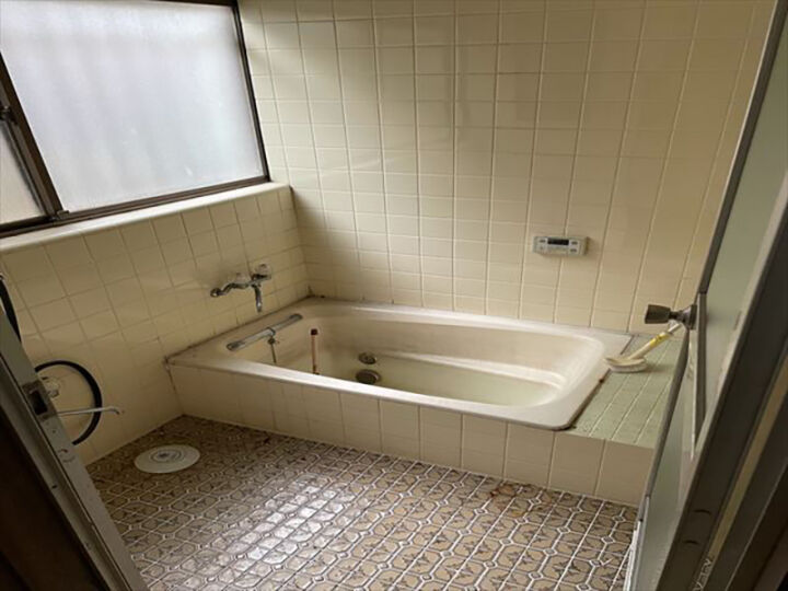 かすみがうら市の空き家再生、浴室も確認します。