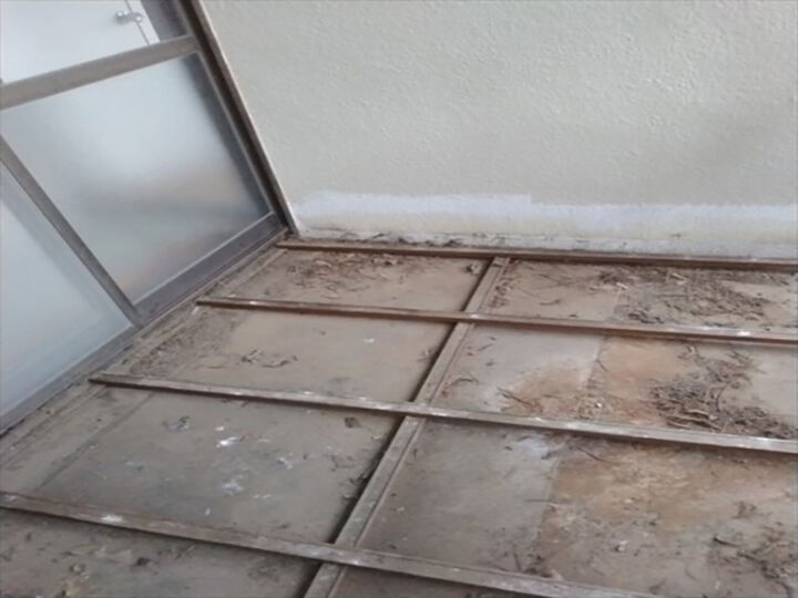 こちらの写真はベランダの床板パネルを撤去した状態です。