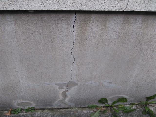 ひび割れは上から下まで、基礎コンクリートの高さいっぱいまでに伸びています。