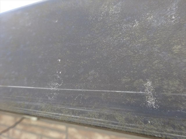 近くで見ると、屋根の端部も平坦な面に比べると水が溜まるので、苔が生えやすくなっていきます。
