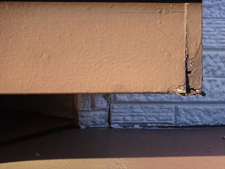 こちらも外壁調査の写真同様に凹んでしまい、表面の塗膜が割れているのが