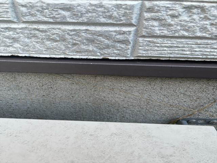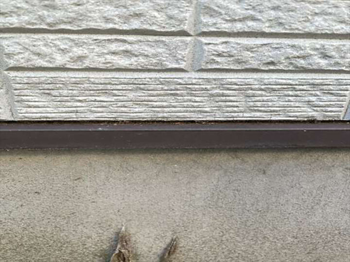 つくばみらい市の雨漏り調査現場、外壁の水切り周辺の様子です。