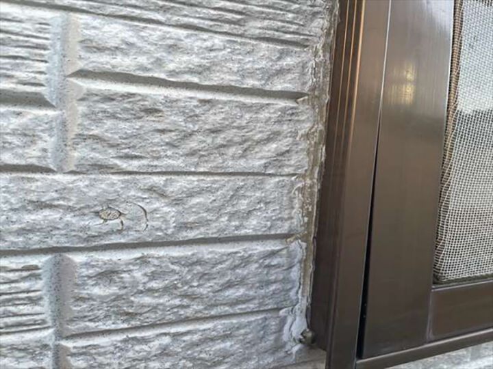 下部にサッシが見えていますが入隅のコーキングが傷んでいるのも確認できます。