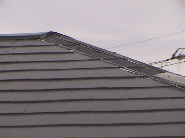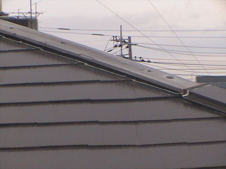 棟板金がついている場所も、釘が抜けかかっているのか棟が浮いてしまっています。
