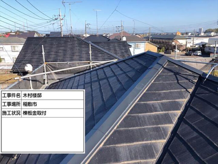 今回ご紹介するのは稲敷市で飛ばされてしまった屋根の棟板金の取り替え工事です。