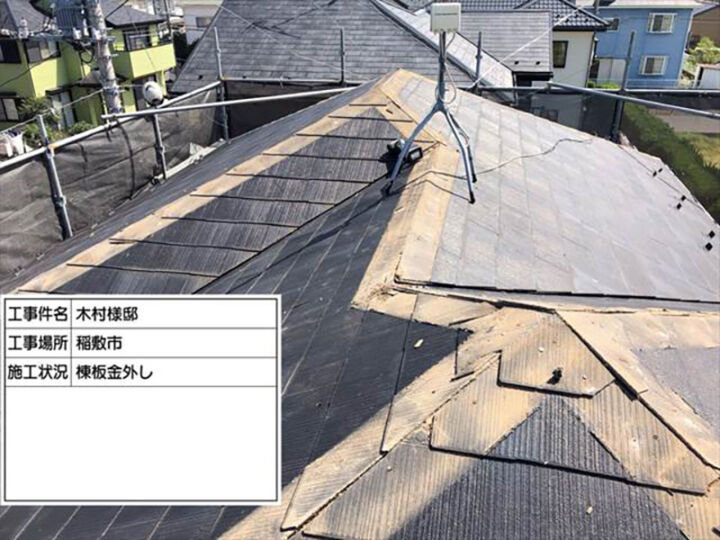 2019年9月に発生した、台風15号の影響で屋根の棟板金(むねばんきん)が飛ばされてしまった家の屋根の棟板金の取り替え工事です。