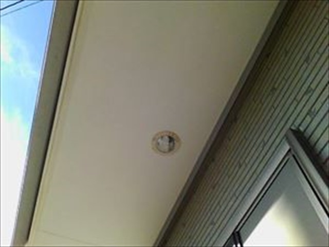 シーリングが劣化して、表面塗膜も劣化していたので、防水性が失われて黒カビが発生していた軒天です。