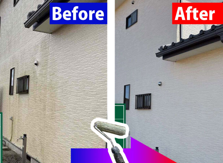 土浦市にお住まいのお客さまから「3年前に外壁を塗り替えたのにもう緑色に汚れてきてしまった😫」というご相談をいただきました📨