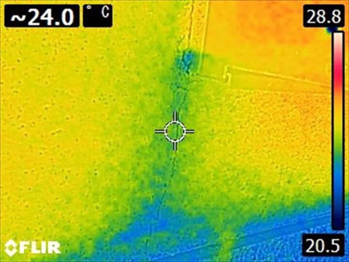 この部分に雨水が染み込んでいないか、赤外線サーモグラフィーで確認してみましょう。