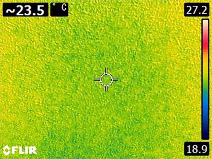 赤外線サーモグラフィーは、温度が高い部分は赤く、反対に温度が低いところは青く表示されます。