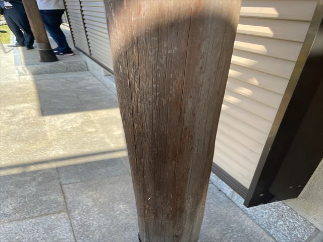 丸柱です。こちらも色が褪せてきてしまいました。塗装が必要ですね。
