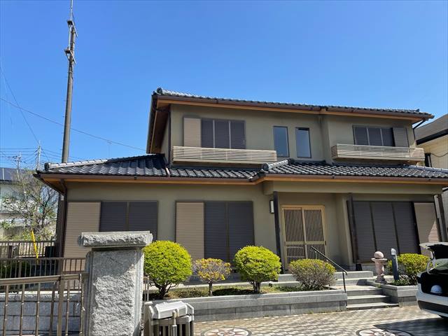 土浦市の築24年のお住まいです。モルタルの下地にリシン吹付けをした外壁、瓦屋根の和風住宅です。