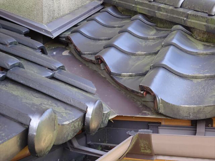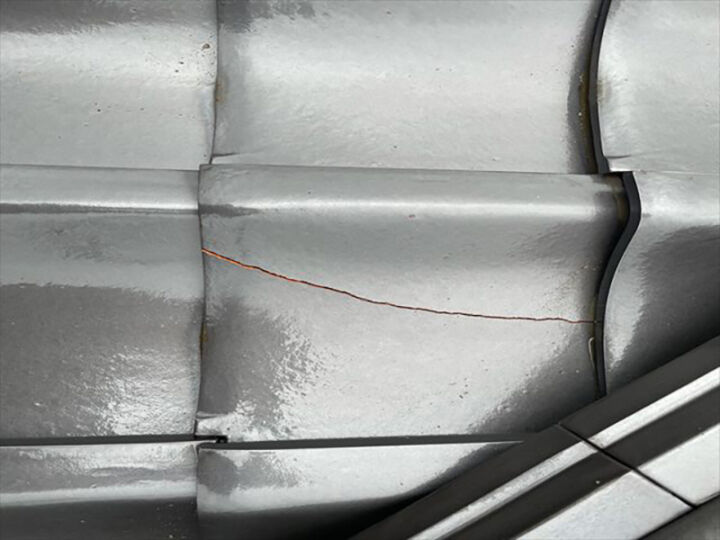 詳しく瓦のようすを確認してみると割れた瓦がありました。