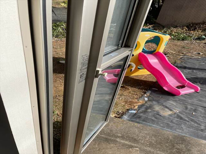 土浦市の現地調査、増築のご要望があった東面にある勝手口の様子です。