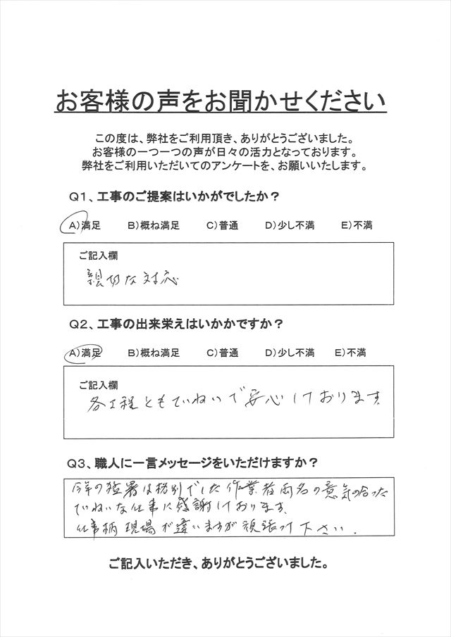 各工程ともていねいで安心しております。 - 職人に一言メッセージをいただけますか?