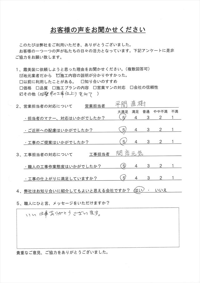 - 工事の仕上がりに満足していますか?