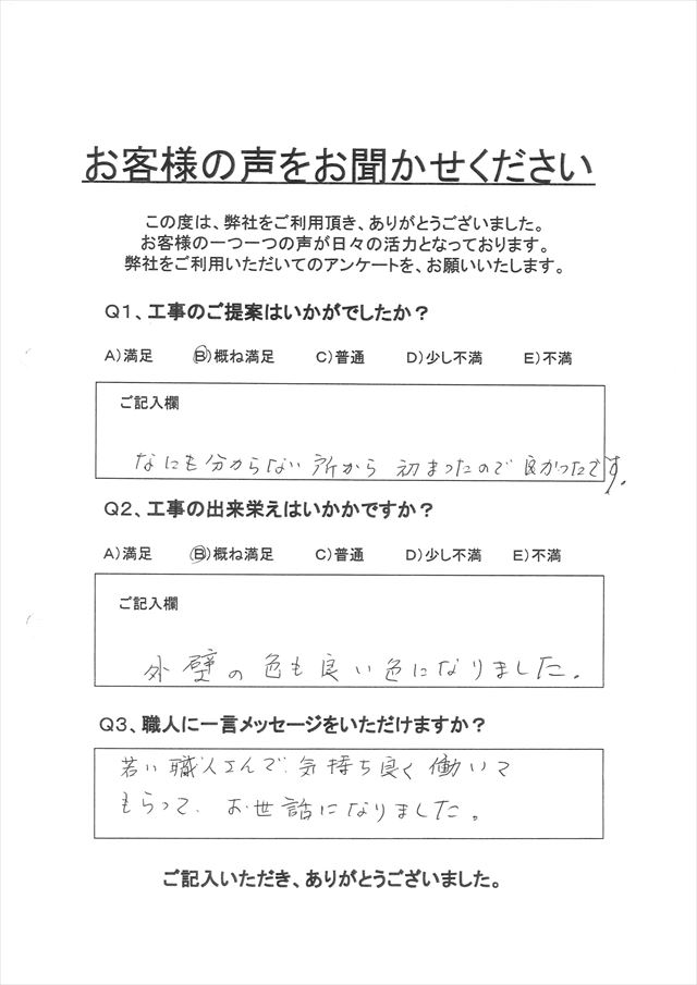 若い職人さんで気持ちよく働いてもらって、お世話になりました。