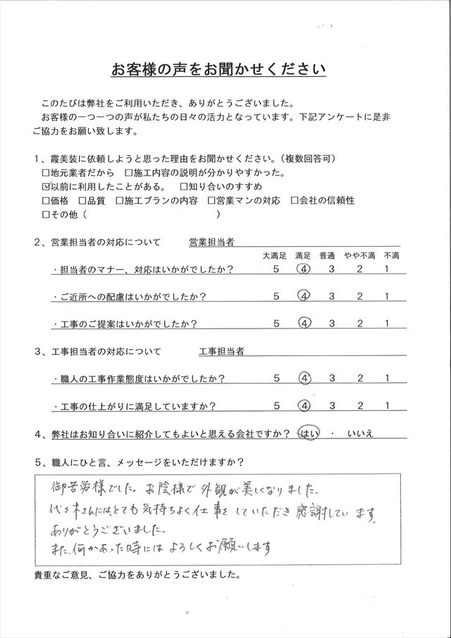 御苦労さまでした。お蔭様で外観が美しくなりなした。